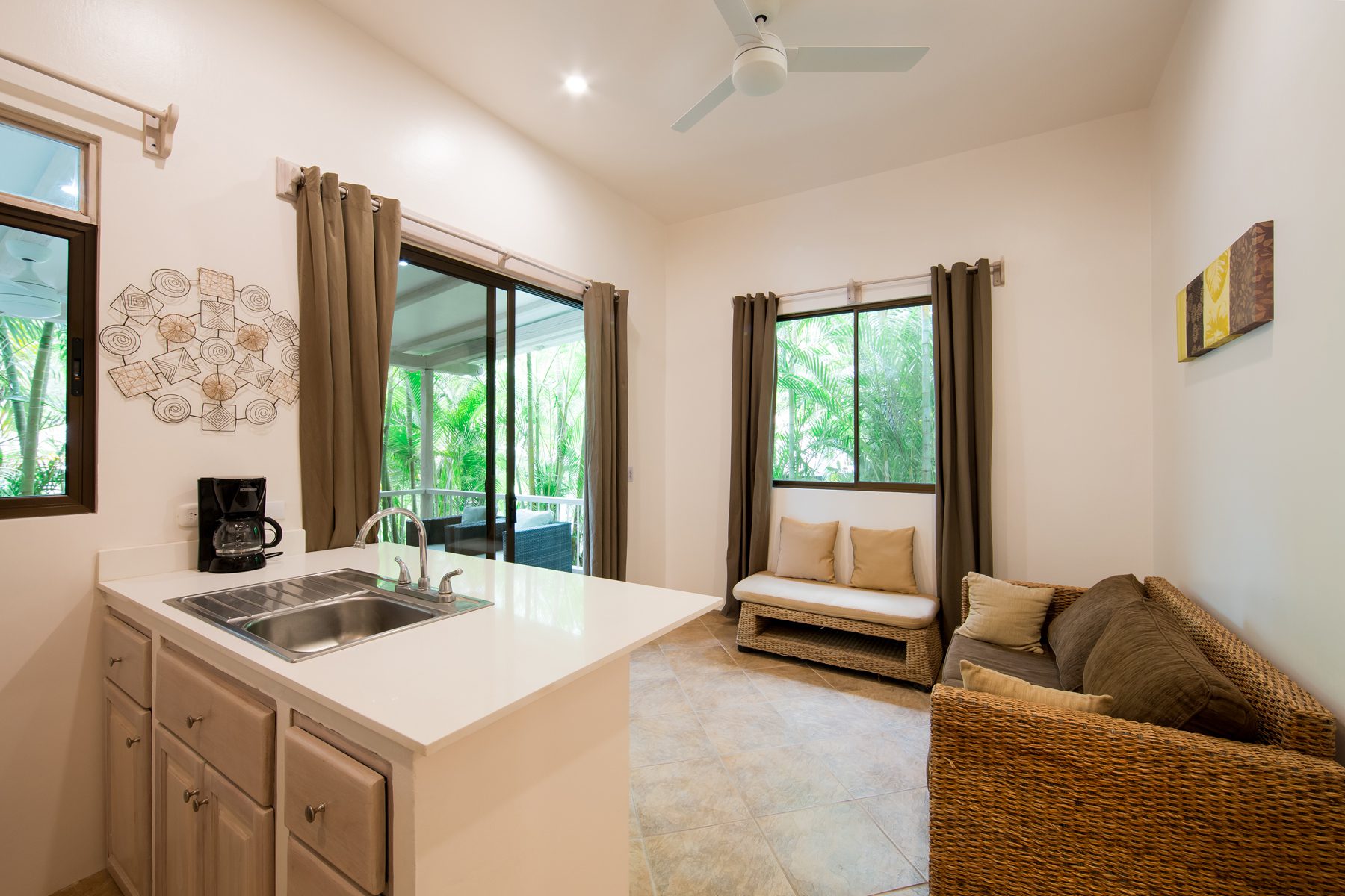 Unwind by lounging on your large outdoor patio as you hear the sounds of waterfalls in the distance. Study or relax in the comfort of your living area with access to free wireless internet. Refresh in your open air, rainfall shower, featuring luxurious Raw Botanicals toiletries.